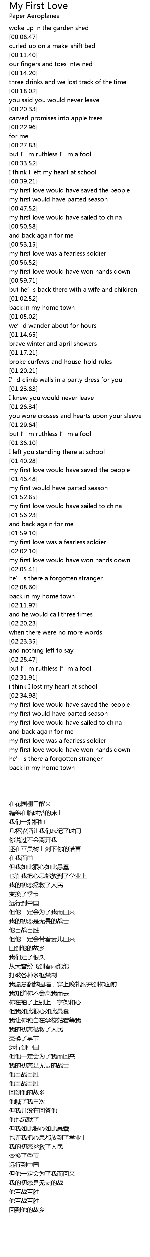| [02:38.29] | my first love was a fearless soldier |