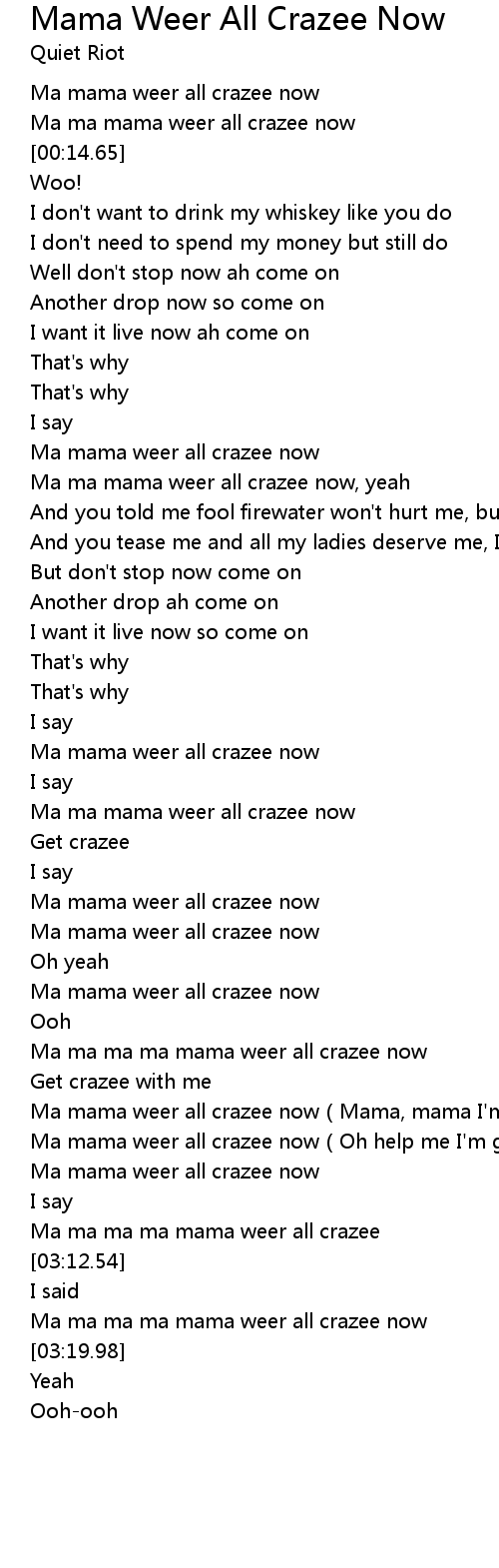 | [03:03.22] | Ma ma ma ma mama weer all crazee |