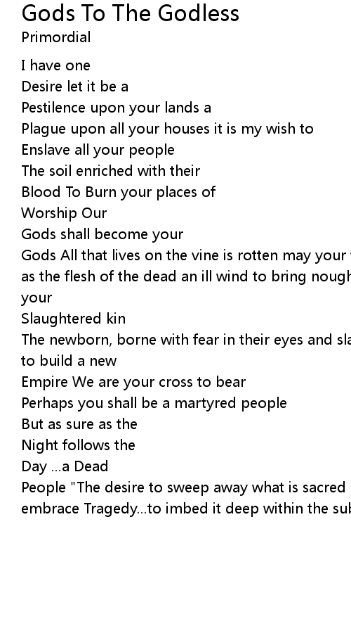 Gods All that lives on the vine is rotten may your wines be foul and your bread as the flesh of the dead an ill wind to bring nought but decay and the stench of your |