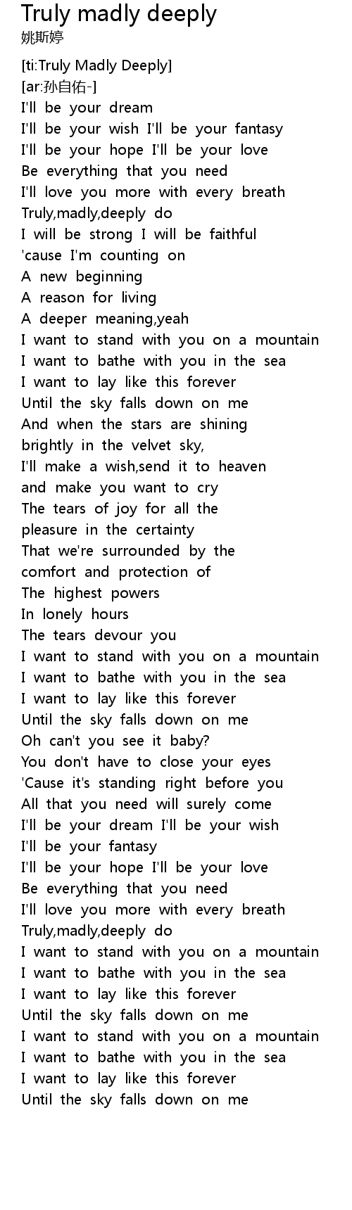 | [ti:Truly Madly Deeply] | |
