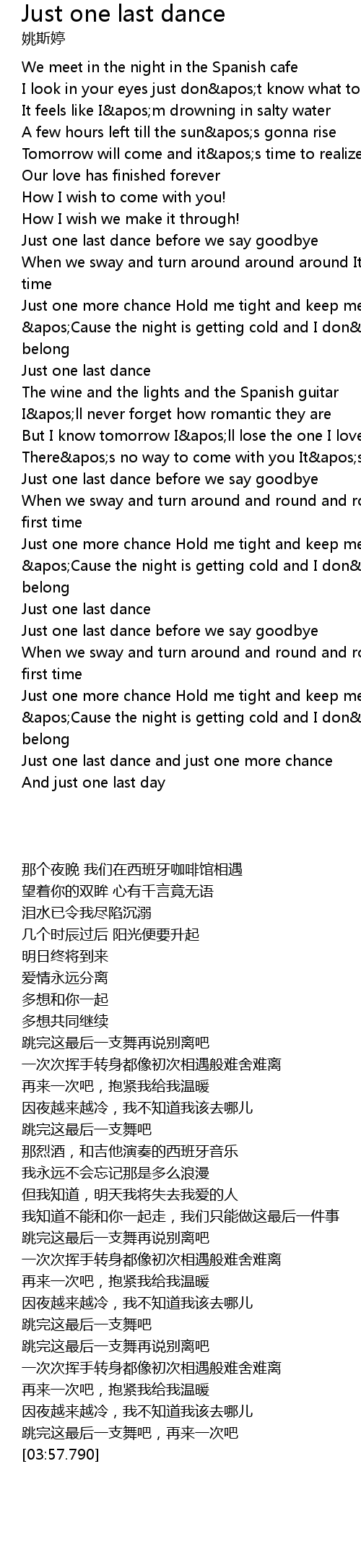 | [03:25.79] | Just one more chance Hold me tight and keep me warm |