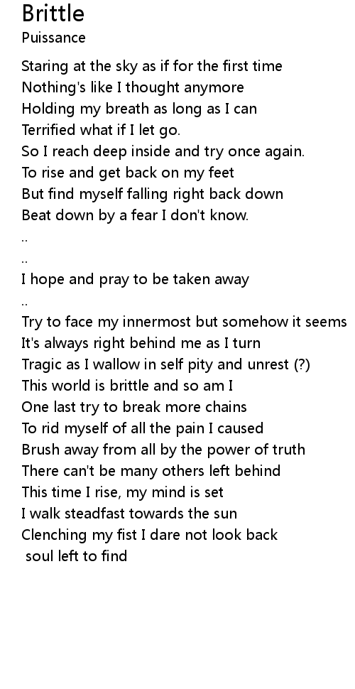 This world is brittle and so am I |