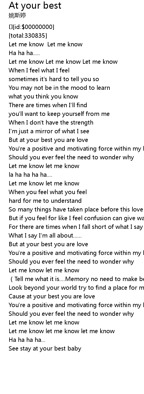 | [03:28.106] | You' re a positive and motivating force within my life |