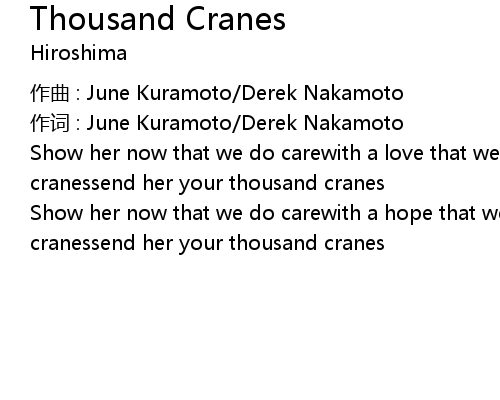 | Show her now that we do carewith a love that we all sharesend her a thousand cranessend her your thousand cranes | |