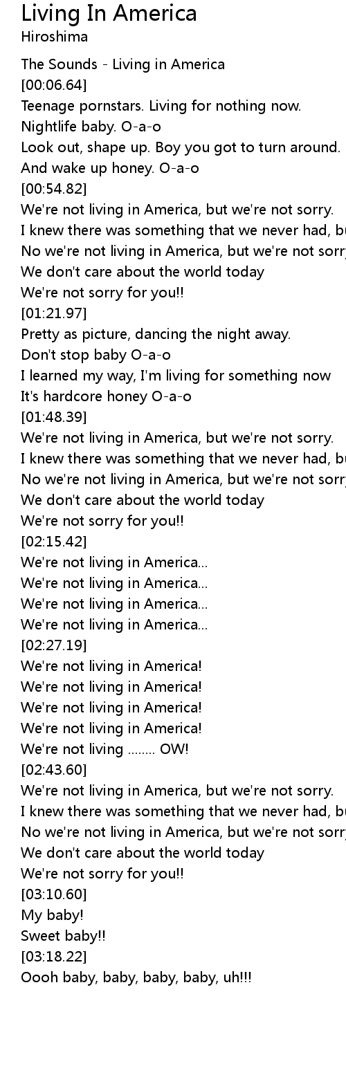 | [01:08.32] | No we're not living in America, but we're not sorry |