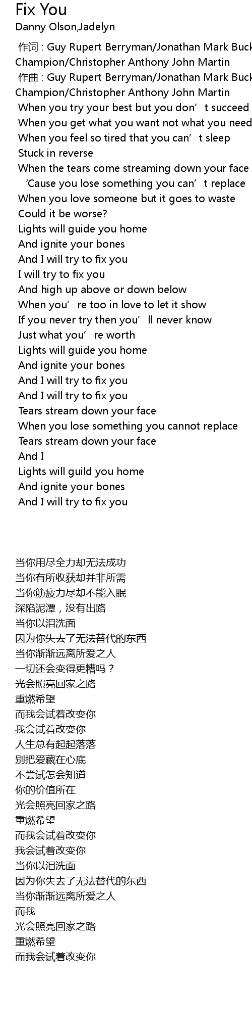 | [00:01.000] | zuo qu : Guy Rupert Berryman Jonathan Mark Buckland William Champion Christopher Anthony John Martin |