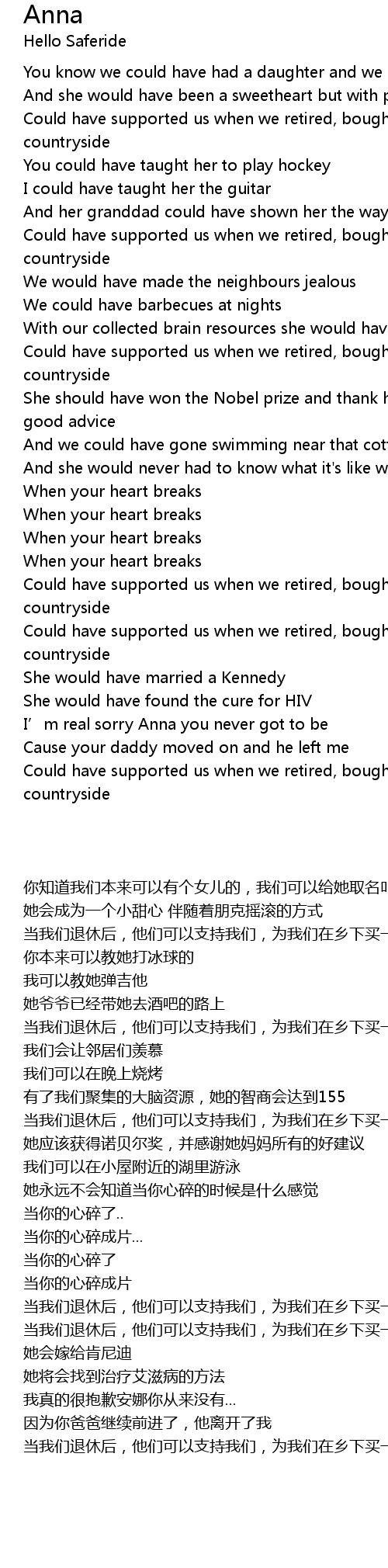 | [00:00.00] | You know we could have had a daughter and we could have named her Anna |