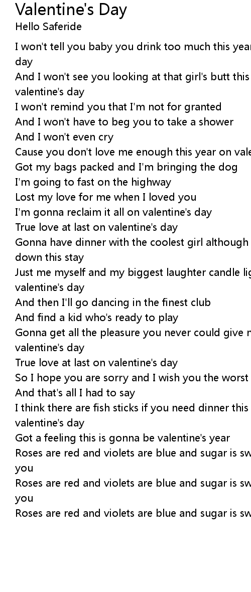 | [00:26.44] | I won't tell you baby you drink too much this year on valentine's day |