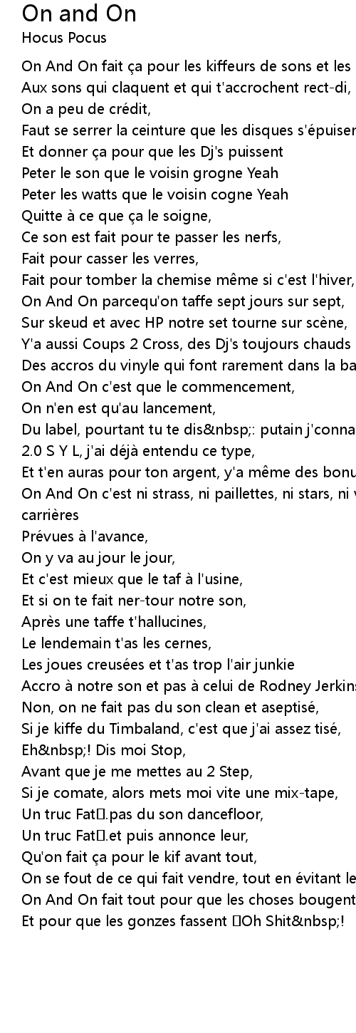 | On And On parcequ' on taffe sept jours sur sept, | |