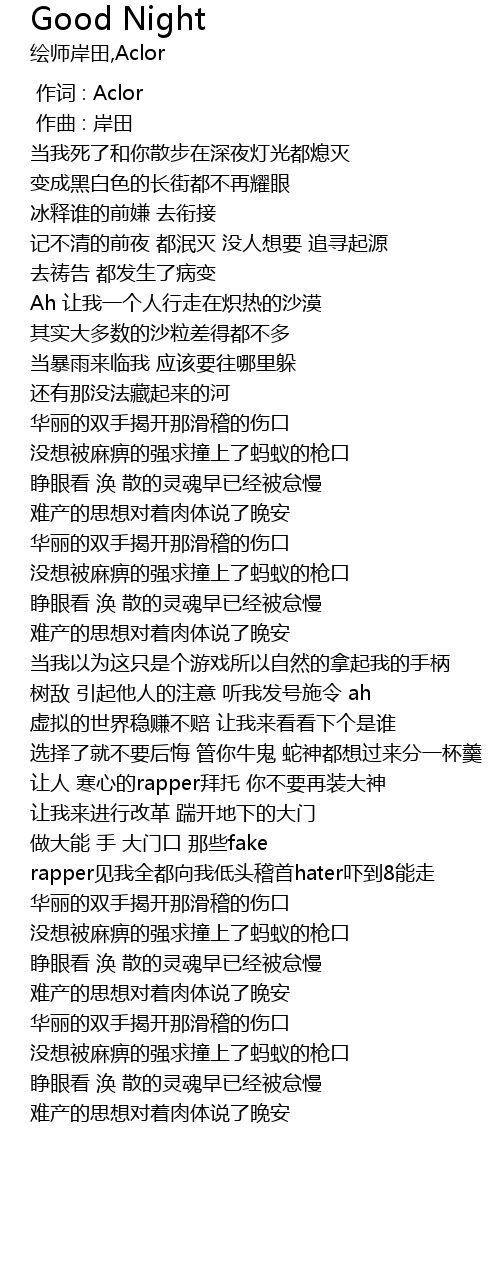 | [02:23.250] | 难产的思想对着肉体说了晚安 |