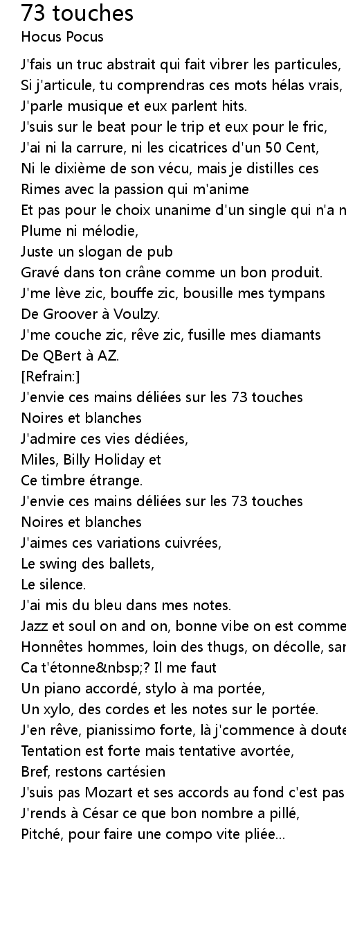 | J' envie ces mains dé lié es sur les 73 touches | |