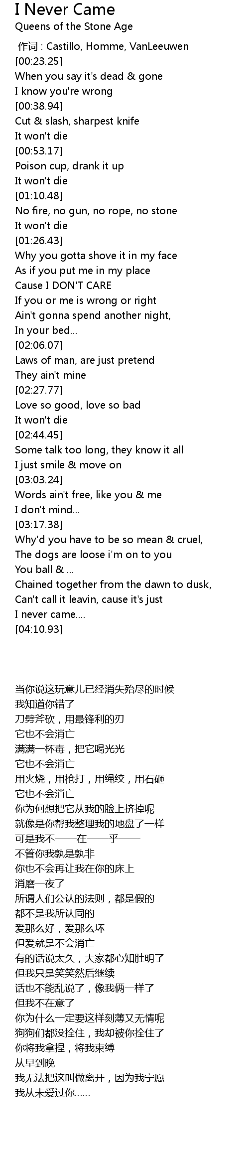 | [00:00.00] | 作词 : Castillo, Homme, VanLeeuwen |