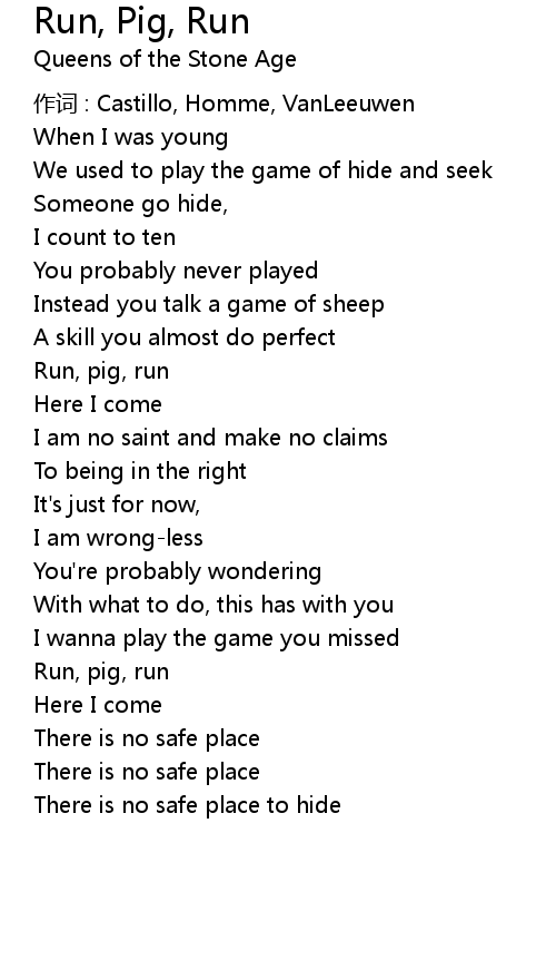 | Song | Run, Pig, Run |