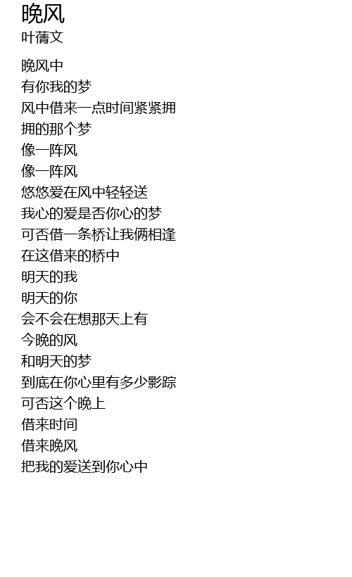 | [00:19.70] | 晚风中 |