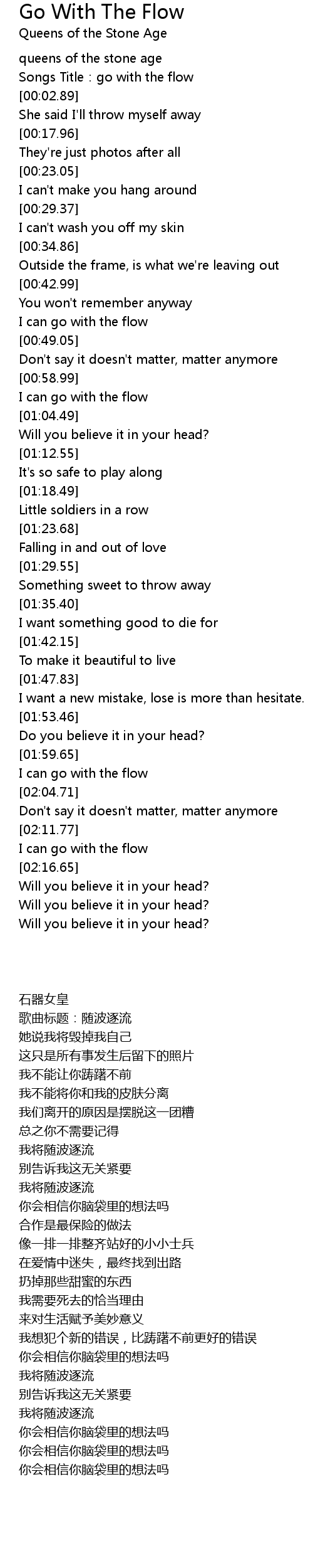 | [00:01.58] | Songs Title:go with the flow |