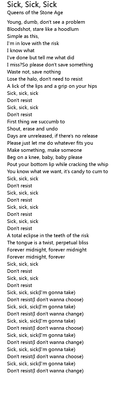 Sick, sick, sick(I'm gonna take) |