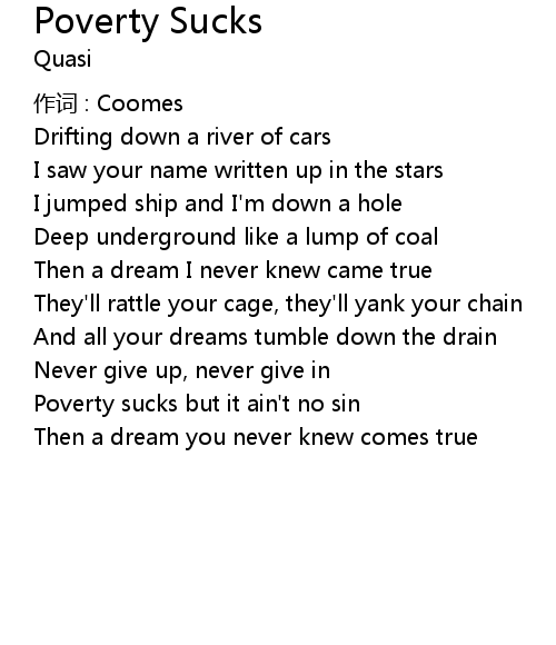 | Poverty sucks but it ain' t no sin | |