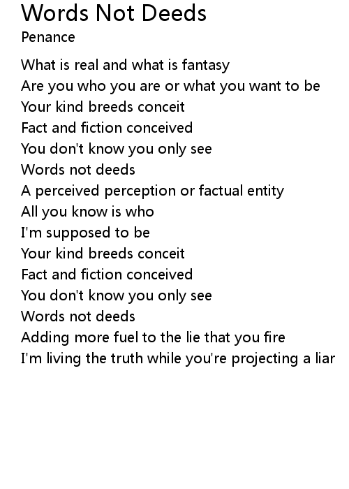 | Song | Words Not Deeds |