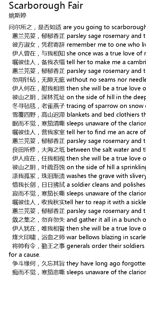 | 问尔所之,是否如适 are you going to scarborough fair? | |