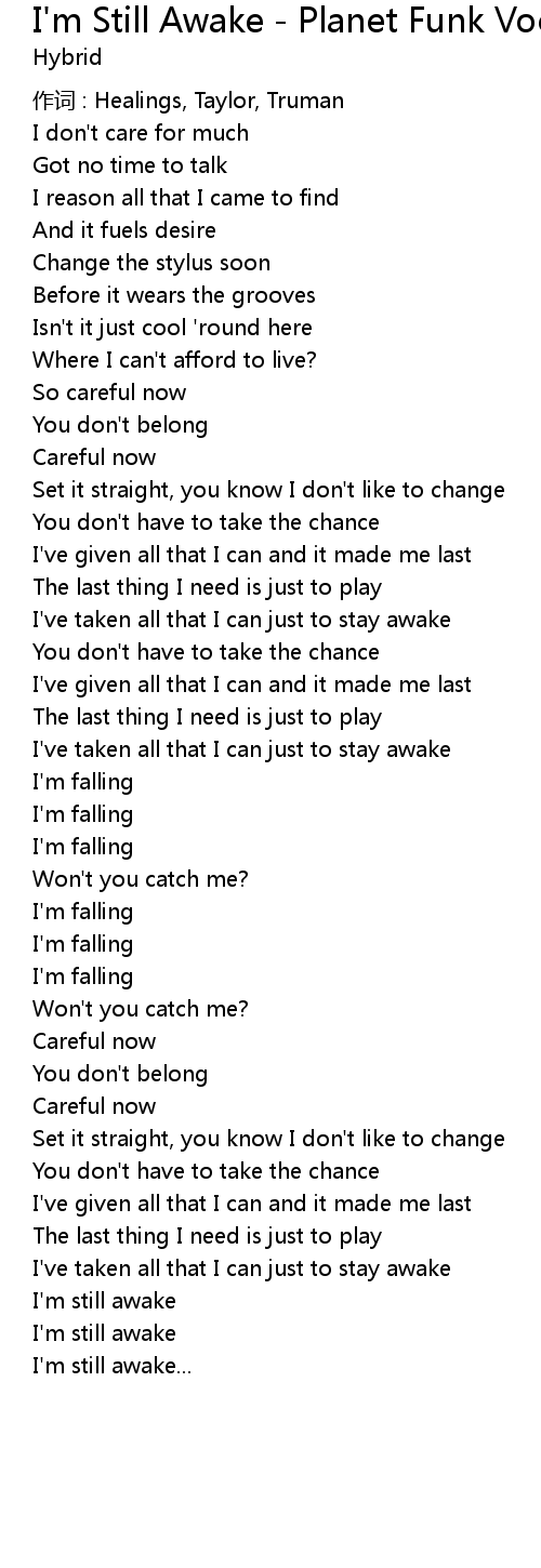 | Song | I'm Still Awake - Planet Funk Vocal Mix |