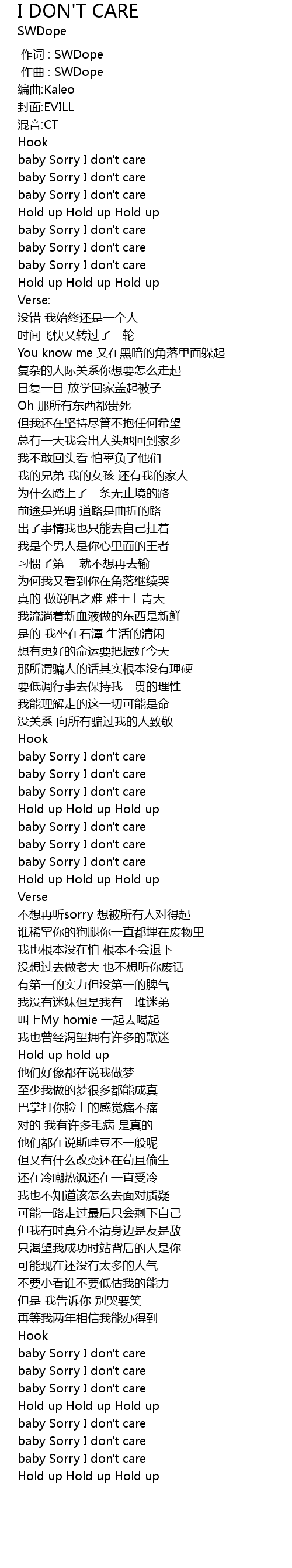 | [00:00.000] | 作词 : SWDope |