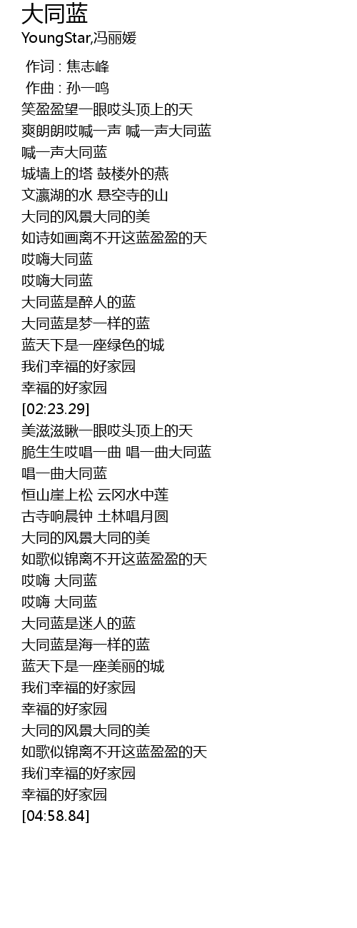 | [00:59.29] | 喊一声大同蓝 |