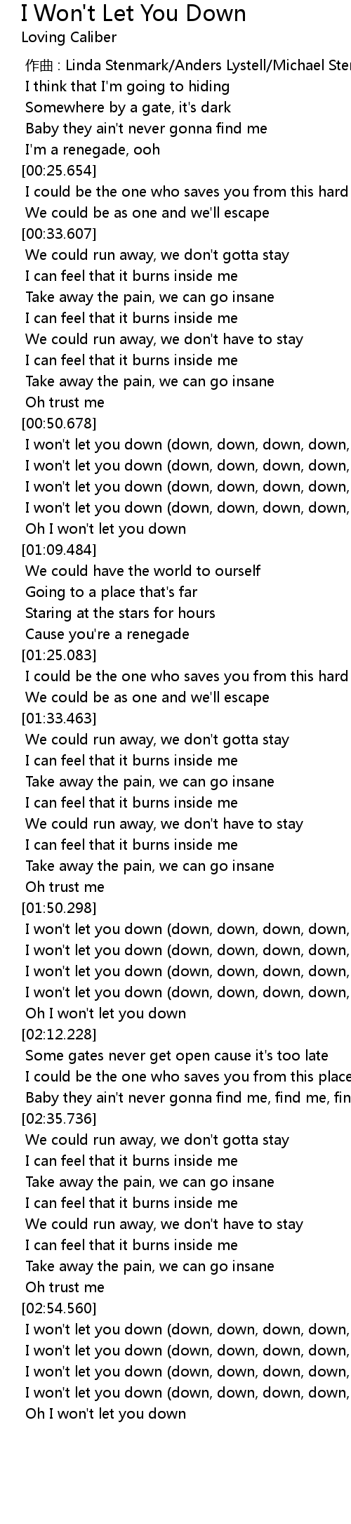 | [00:58.913] | I won't let you down (down, down, down, down, down) |