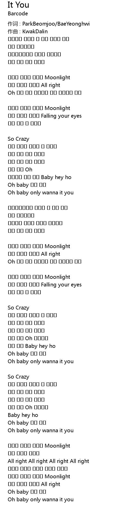 作词 : ParkBeomjoo/BaeYeonghwi |
