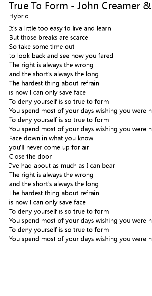 True To Form - John Creamer & Stephane K Mix Lyrics