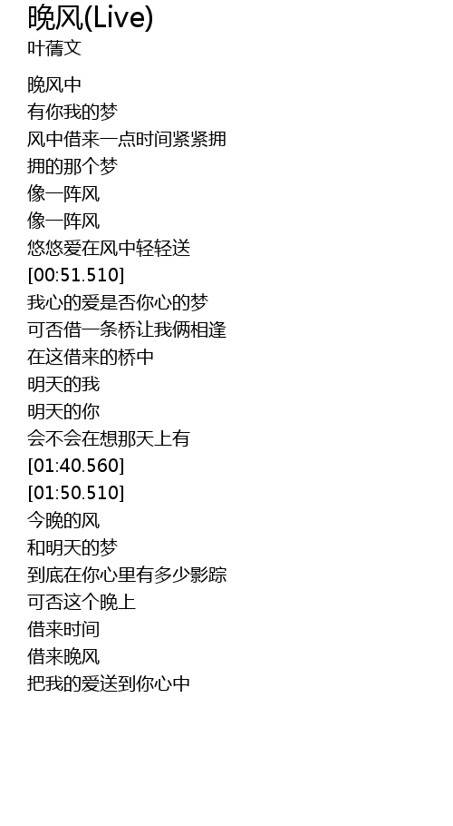 | [00:17.520] | 晚风中 |
