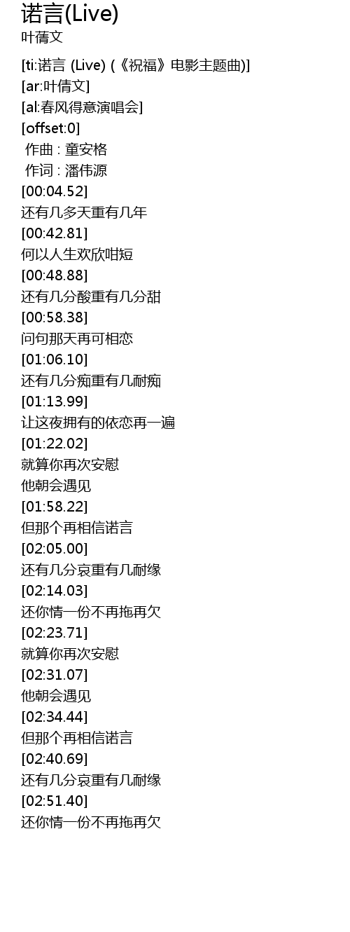 | [ti:诺言 (Live) (《祝福》电影主题曲)] | |