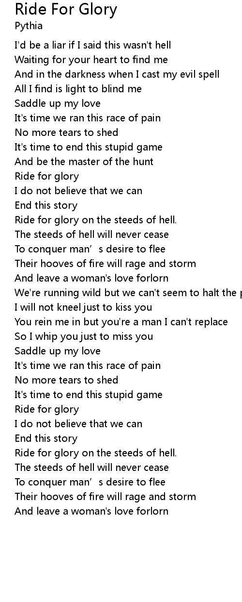 | Ride for glory on the steeds of hell. | |