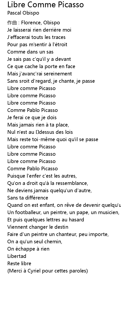 | Song | Libre Comme Picasso |