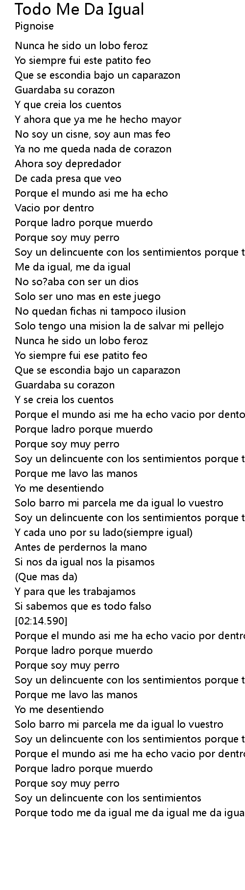 | [03:06.945] | Porque todo me da igual me da igual me da iguaaal, me da igual |