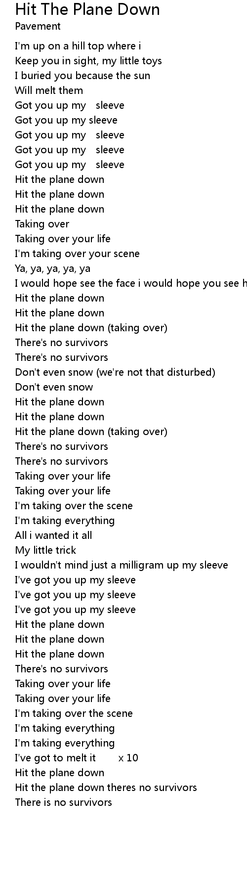 | Song | Hit The Plane Down |