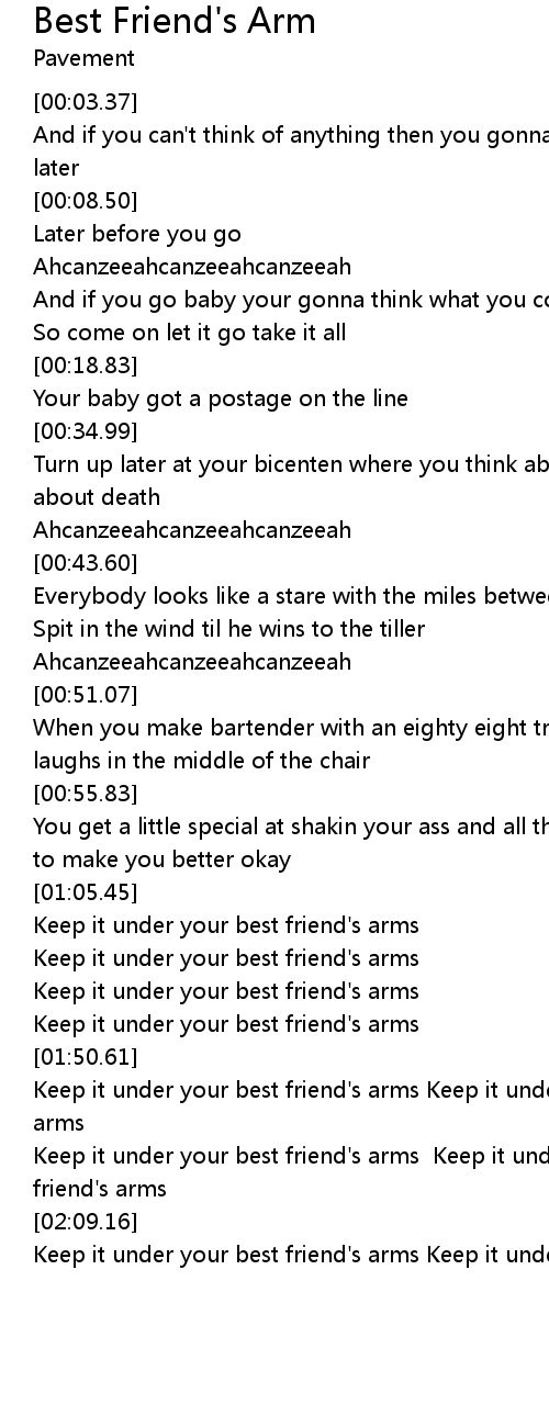 Keep it under your best friend's arms Keep it under your best friend's arms |