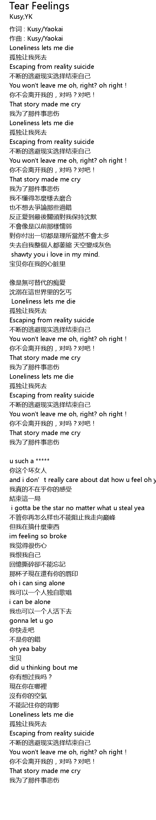 | 作词 : Kusy/Yaokai | |