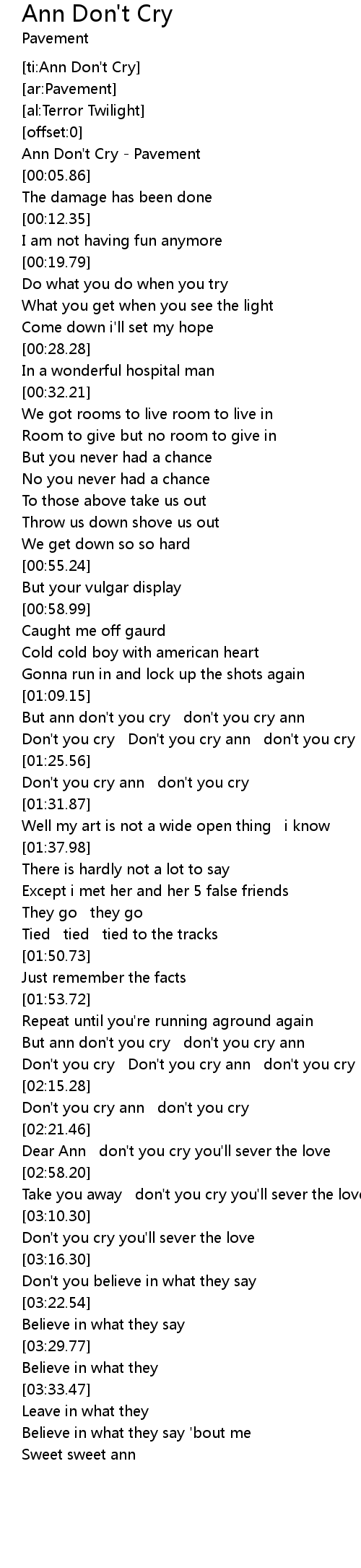 Ann Don't Cry - Pavement |