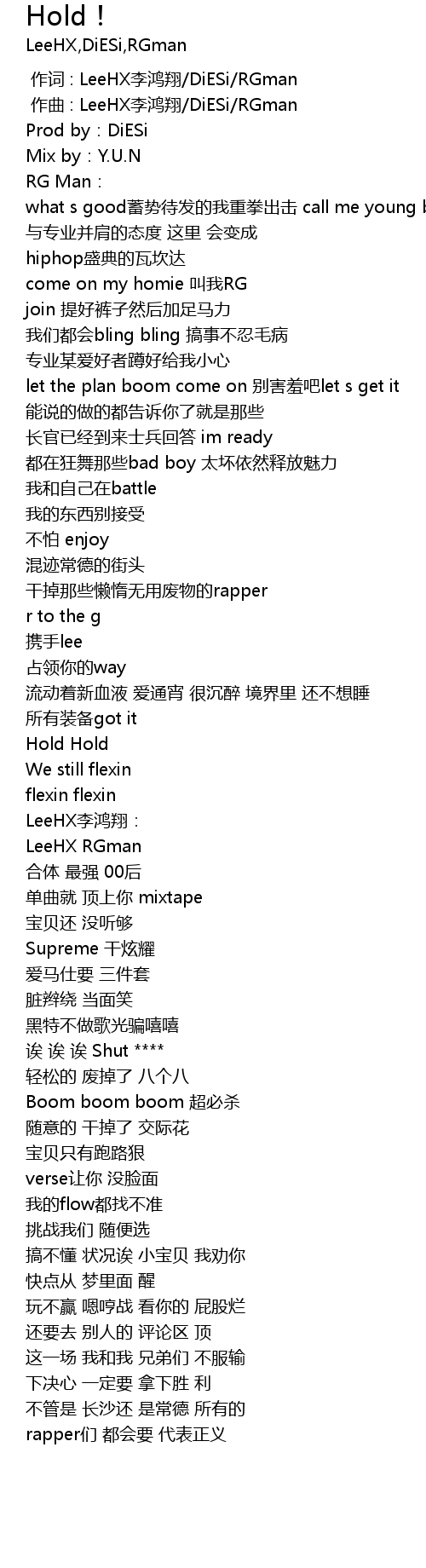 | [00:00.000] | 作词 : LeeHX李鸿翔/DiESi/RGman |