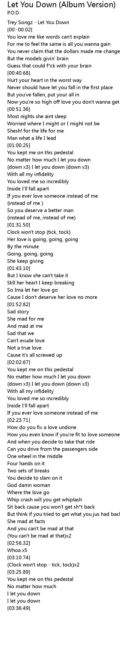 | [02:10.27] | (down x3) I let you down (down x3) |