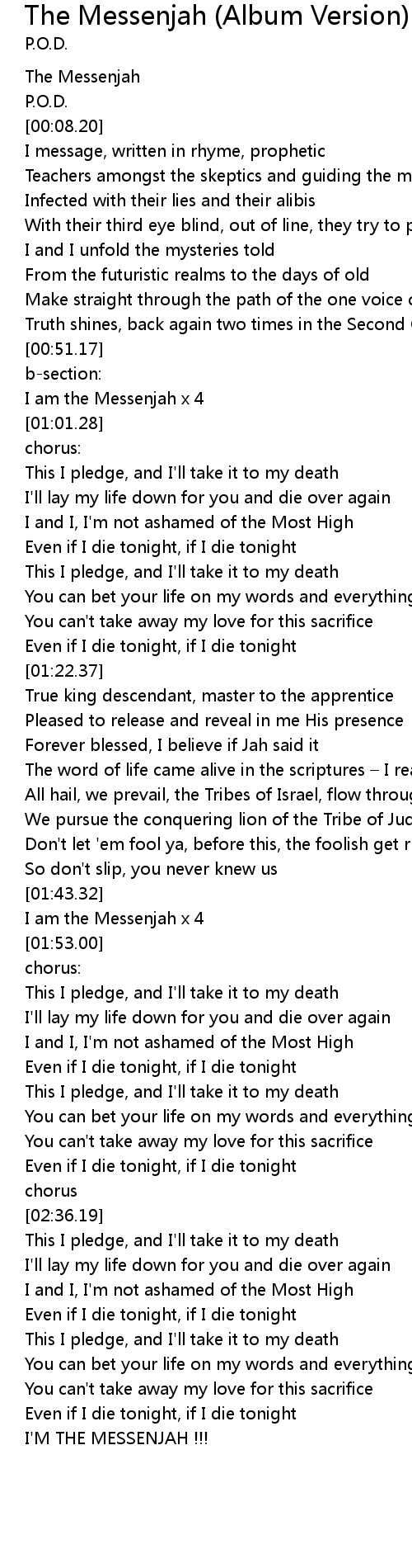 | [00:51.76] | I am the Messenjah x 4 |