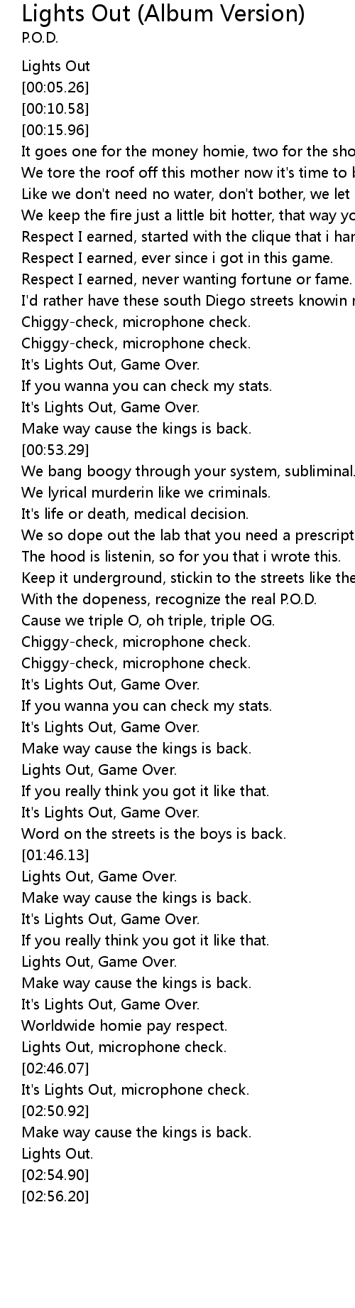 | [01:17.26] | With the dopeness, recognize the real P.O.D. |