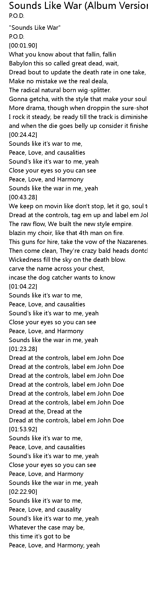 | [00:00.47] | "Sounds Like War" |