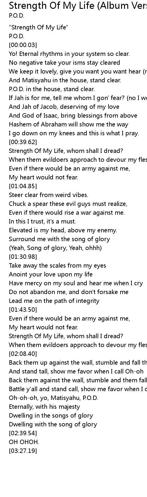 | [02:23.47] | Oh-oh-oh, yo, Matisyahu, P.O.D. |