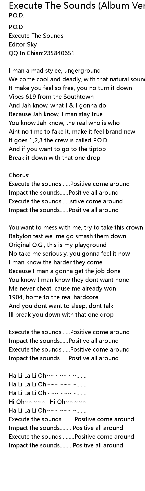 Execute the sounds......sitive come around |