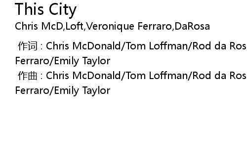 | [00:00.000] | 作词 : Chris McDonald/Tom Loffman/Rod da Rosa/Veronique Ferraro/Emily Taylor |