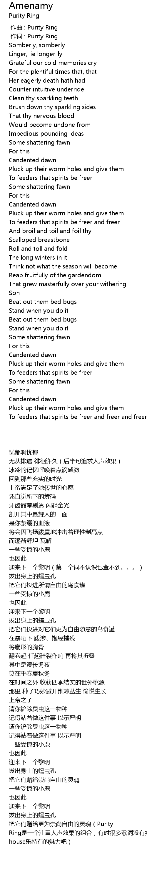 | [00:01.00] | zuò cí : Purity Ring |
