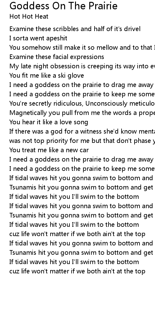 I need a goddess on the prairie to drag me away |