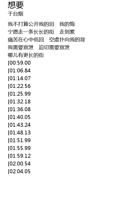 | [00:48.62] | 我需要宣泄 迫切需要宣泄 |