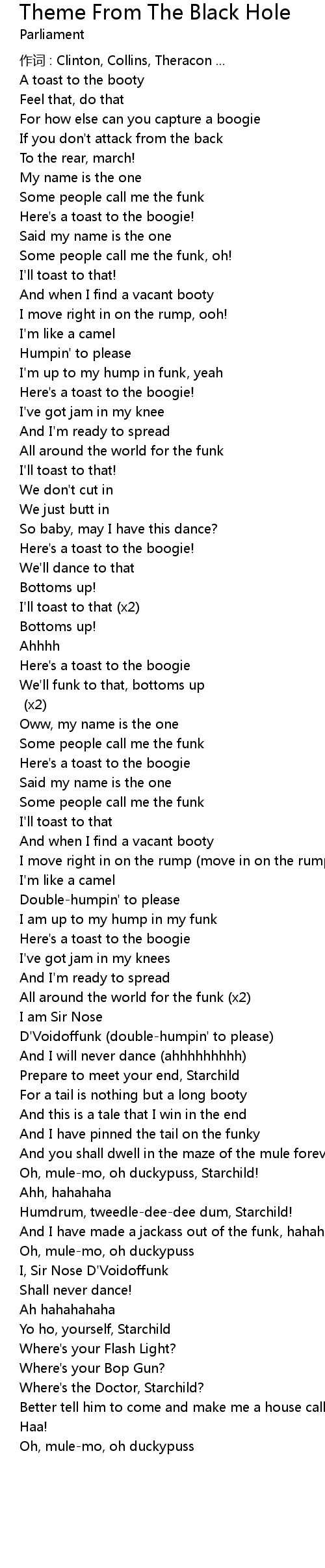 | 作词 : Clinton, Collins, Theracon ... | |